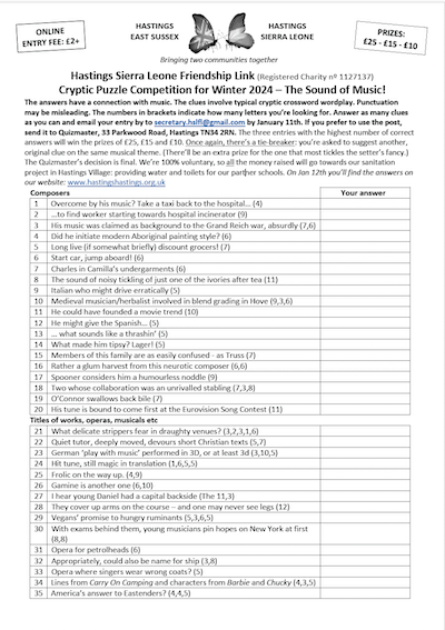 Click the button below to pay for the sheet via PayPal (you can pay by regular credit or debit card if you don’t have a Paypal account). We’re asking for a minimum donation of £2 per sheet, but any more you can give will help the Link to pay for its current important health and education projects in Hastings Sierra Leone. So, by downloading the quiz you’ll be doing a very good deed.